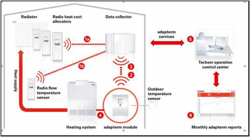 One application area are district heating systems delivering heated water to buildings, which are known to be more difficult to meter and control than individual dwelling heating. Once smart technologies are in place, these systems can automatically carry out partial switch off – boilers, pumps etc. – depending on demand parameters set by tenants. Tenants can arrange that temperature in individual rooms or throughout the dwelling are reduced during the night and during absence from the dwelling.
