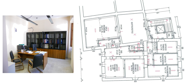 The first floor is divided in 9 rooms indoor addressed to different activities such as the ground floor. The total surface area that will be involved in the EDISON Pilot at first floor is 136,00 m2 wide.