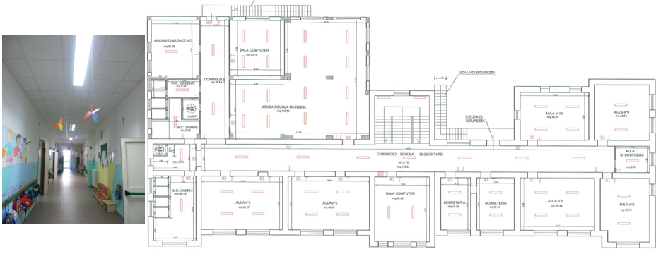 The building is structured in two floors: a ground floor and a first floor. The ground floor is divided in 26 rooms indoor and 1 rooms outdoor addressed to different activities such as kitchen, classroom, w.c., corridor, lumber room, atrium. The total surface area that will be involved in the EDISON Pilot at ground floor is 727,03 m2 wide. The first floor is divided in 18 rooms indoor addressed to different activities such as archive, classroom, w.c., corridor, dinning hall. The total surface area that will be involved in the EDISON Pilot at first floor is 727,52 m2 wide.