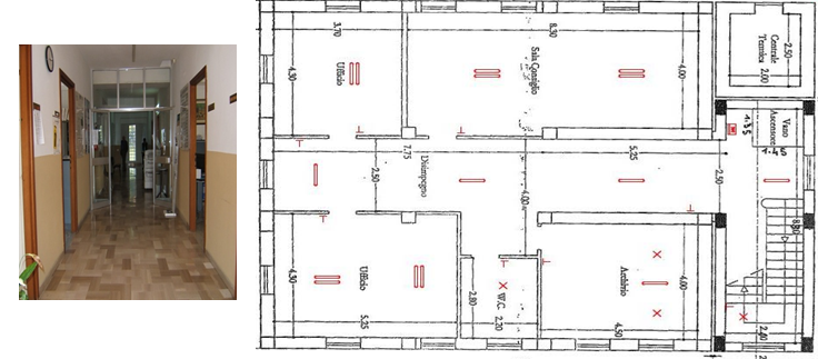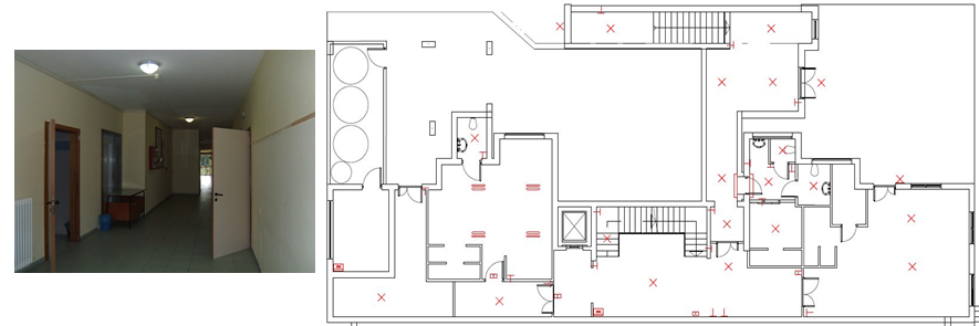 The ground floor is divided in 17 rooms indoor addressed to different activities such as entrance hall, corridor, restroom, amnistration office, stairwell, lift. The total surface area that will be involved in the EDISON Pilot at first floor is 473.37 m2 wide.