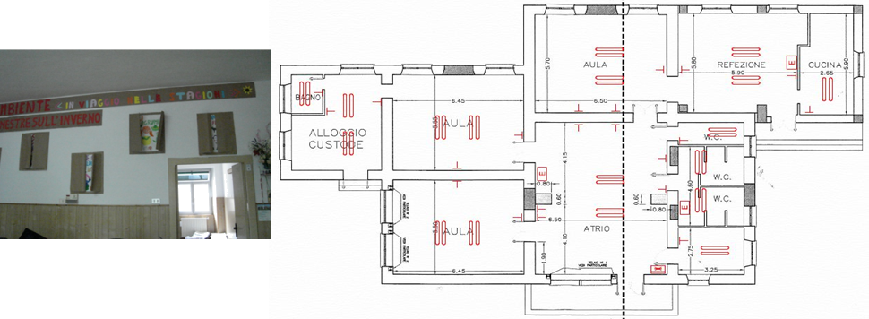 The building is structured in one floor. The floor is divided in 11 rooms indoor addressed to different activities such as entrance hall, restroom, administration office, doorkesper room,.dinigg room, classroom, kitchen. The total surface area that will be involved in the EDISON Pilot at this building site is 245,23 m2 wide