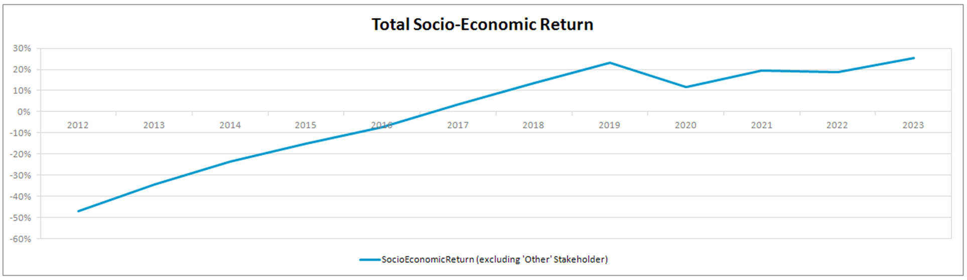 The path for total socio-economic return is almost steadily increasing and crosses the point of return after around five years. The baseline scenario (Do-Nothing) is rather optimistic given only implementation cost for (cheap) heat cost allocators have been considered and no operation cost included (which would resemble a steeper path for BECA). As the business model(s) of competitors in the newly developing measurement market is not fully known, the cost-benefit analysis has been performed cautiously. The stakeholder graphs show: Tenants only have to expect losses during the implementation phase while the first replacement (assuming Tenants to be the payers once more) will have already paid for itself. The benefit path for Social Housing follows the cost curve and total socio-economic return is heavily influenced by changes in, either, cost or benefits. Since the total revenue stream for Social Housing is low, however, risk (and opportunity) are not endangering the companies’ business model in either case.