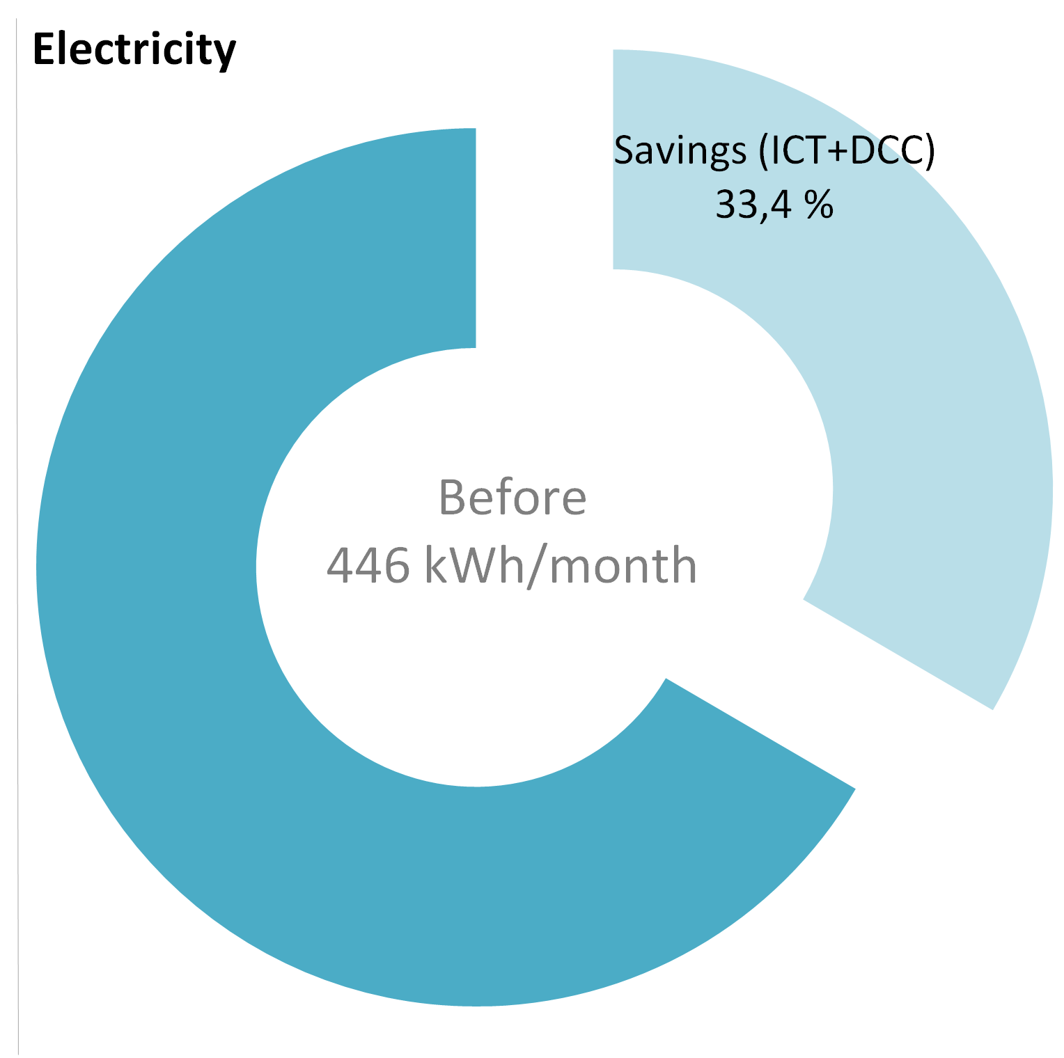 In the two pilots (mnp 01 and mnp 02) are operative 81 ICT components (sensors) to contribute to the energy saving. The table below reports the number, typology of sensors and in particular the estimated amount of average 2.2 and 2.9 kWh, on monthly base, by each sensor.