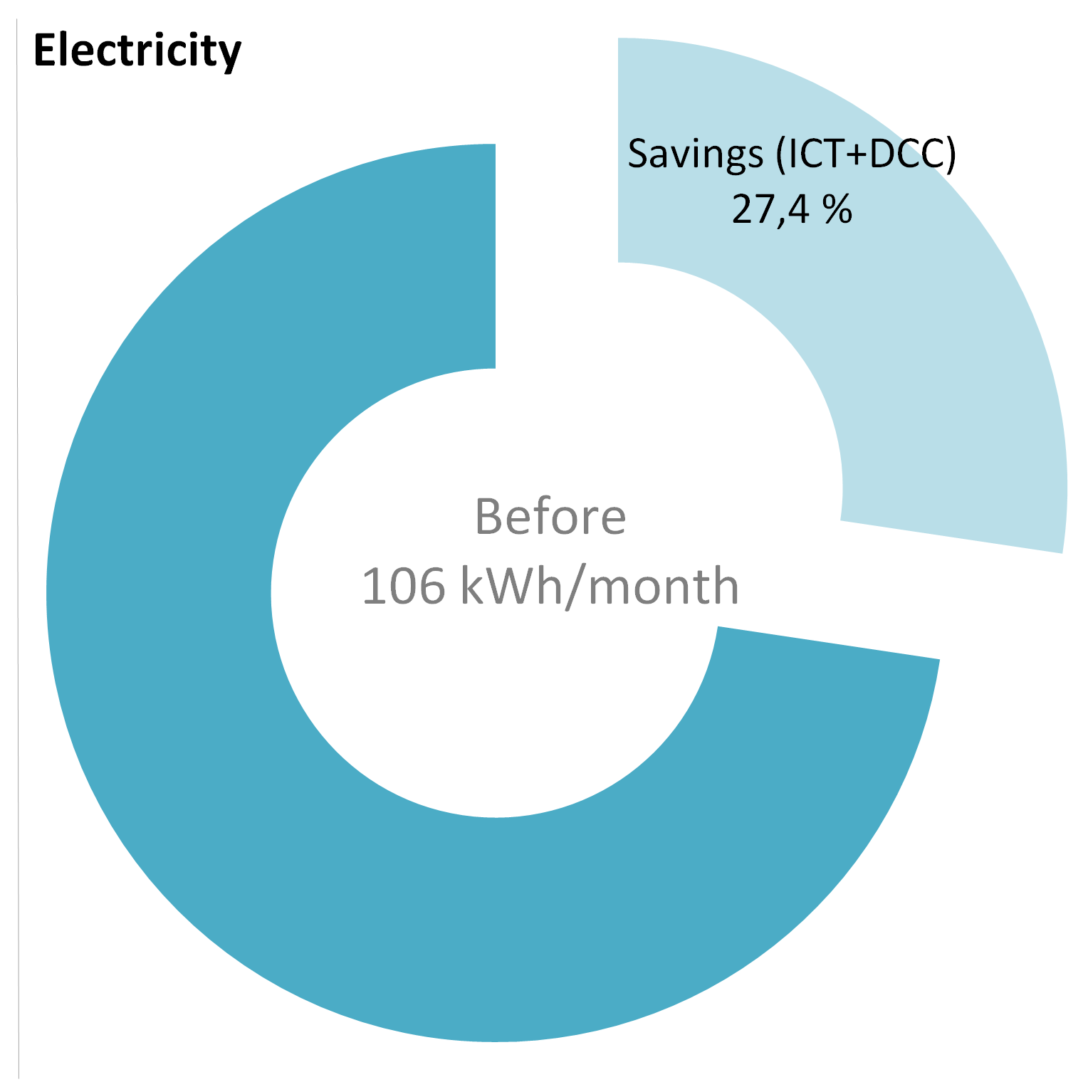 In the three pilots (rmp 01, rmp 02 and rmp 03) are operative 73 ICT components (sensors) to contribute to the energy saving. The table below reports the number, typology of sensors and in particular the estimated amount of average 2.4, 2.0 and 1.7 kWh saved, on monthly base, by each sensor.