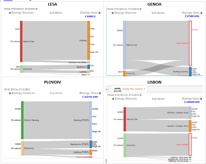 Energy savings for the Energy Conservation Measure (Action Plan) implemented in the four Pilots have been assessed also by using eeMeasure software tool (provided by the EC to validate results of EC-CIP projects). This assessment provides a good understanding of energy savings achieved on thermal, and lighting end-use consumptions. Results of 6 case studies performed for one year period, show that: