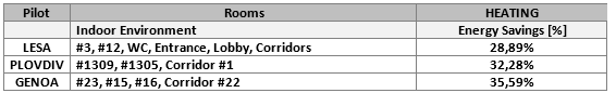- Measuring thermal consumption by heat meter in whole school (PLOVDIV) and Pilot area and the adjacent space (GENOA) where radiator control valves were installed only in the Pilot area and the other radiators have no local heat output control but only central, energy saving up to 10% has been noticed for heating consumption.